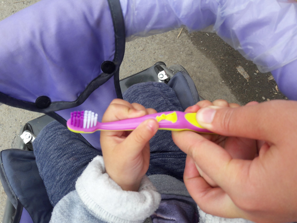 Щетку дочка сгрызла через две недели, ей больше нравится десна сейчас чесать щеткой, чем чистить, пластик успешно отгрызла. Очень быстро разлохматилась и пришла в негодность.