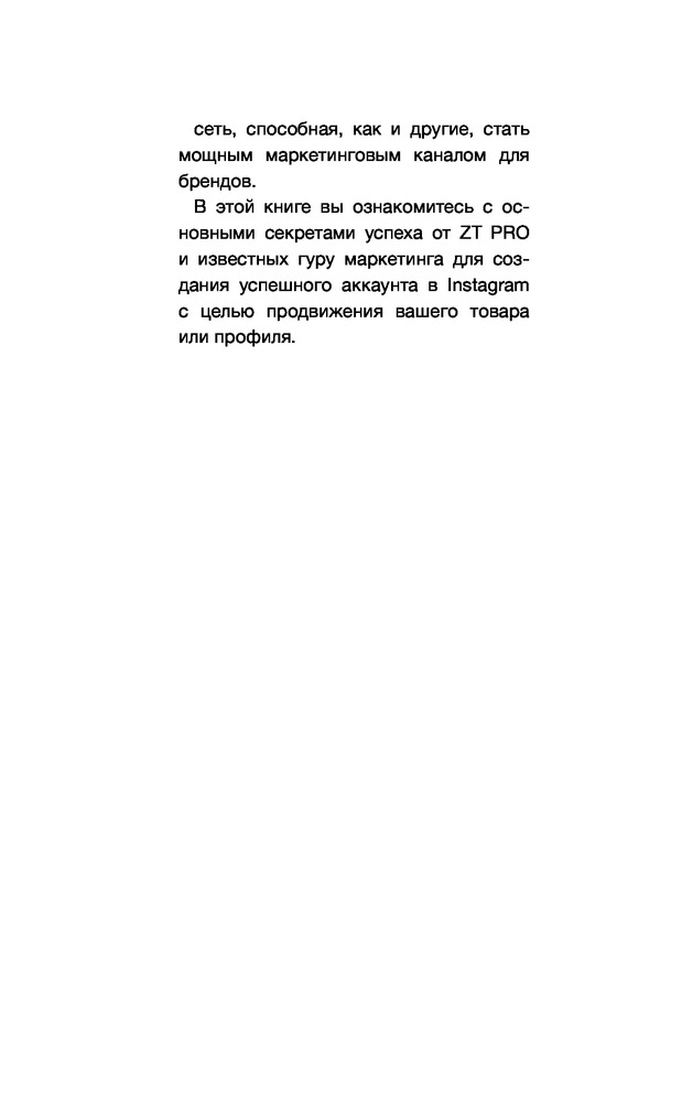 В этой книге вы ознакомитесь с основными секретами успеха от ZT PRO и известных гуру маркетинга для создания успешного аккаунта в Instagram с целью продвижения вашего товара или профиля.