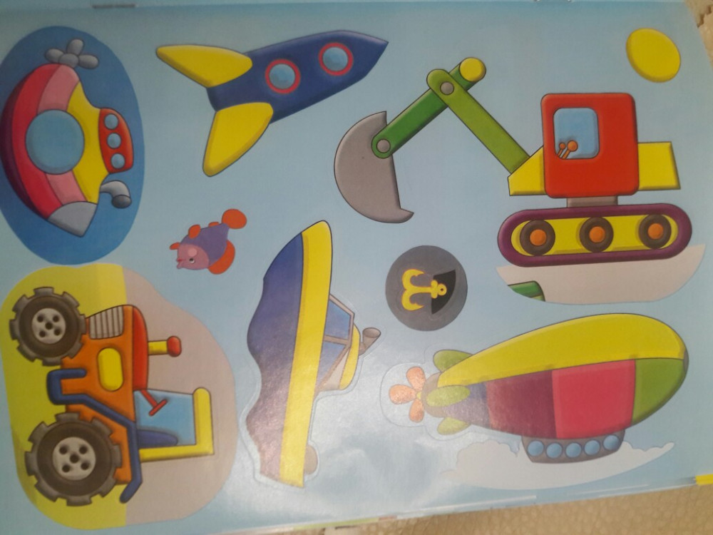 Отличная книжка с наклейками. Сыну(2года) очень понравилась. Страницы гладкие, наклейки можно переклеить, если наклеил неудачно.