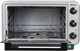 Saturn Электропечь ST-EC10701, серыйВ данный момент этот товар отсутствует в продаже. Возможно, у нас найдется аналогичный или похожий товар здесь. Современная настольная электрическая печь, мощностью в 1300 Вт, станет хорошим помощником на любой кухне. Ее объема в 36 л более чем достаточно для приготовления многих блюд. При работе сможете воспользоваться функциями гриля, выпечкой и подрумянить блюдо. Работает данная модель от сети электропитания. Стоит отметить наличие в ней регулируемого термостата в пределах 280 градусов, трех режимов нагрева — верхнего, нижнего и комбинированного, таймера на 90 мин, функции автоотключения и сигнала об окончании приготовления. Не менее порадует и предлагаемый набор аксессуаров в виде круглой формы для выпечки, прямоугольного противня и решетки для гриля. Внешнее покрытие — эмаль, внутреннее — антипригарная, нержавеющая сталь. |