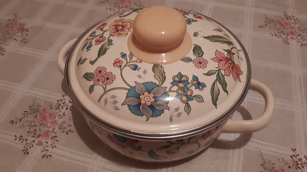 Стальэмаль Кастрюля эмалированная «Луговые цветы»В данный момент этот товар отсутствует в продаже. Возможно, у нас найдется аналогичный или похожий товар здесь. Серия: Луговые цветы Эмалированная кастрюля надежно укрывает металл стекловидной эмалью, не позволяя ему контактировать с пищей. Этот вид посуды определенно выигрывает у алюминиевого благодаря своему внешнему виду — на кухне такая кастрюля всегда выигрышно смотрится. Эмаль на кастрюле хорошо моется и чистится, посуда долго сохраняет первоначальный вид. В основе эмалированной кастрюли находится чаша из металла или чугуна, которая не деформируется под влиянием огня или спирали электрической плиты. |