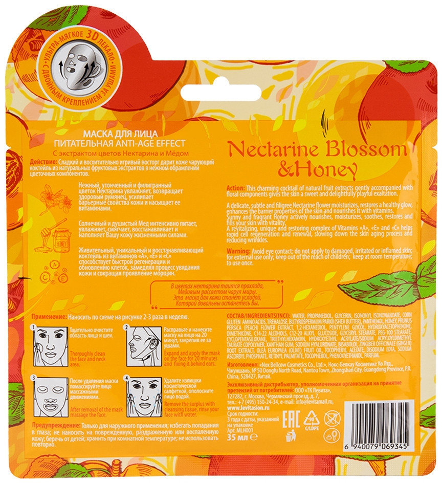 Levitasion Маска для лица питательная «Nectarine Blossom & Honey»