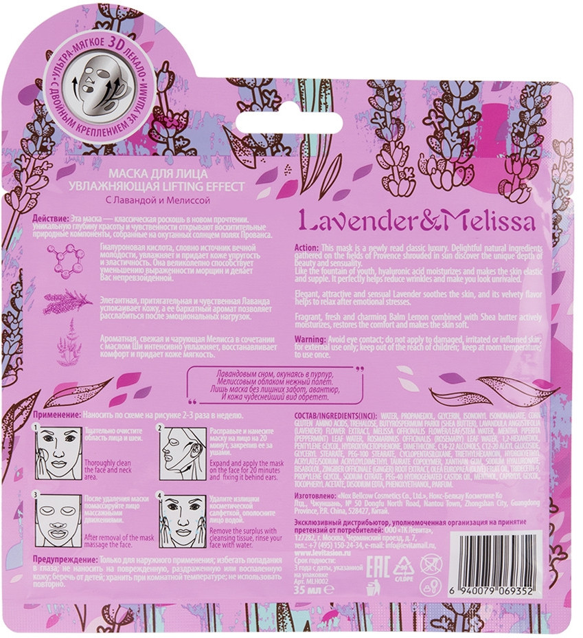Levitasion Маска для лица увлажняющая «Lavender & Melissa»