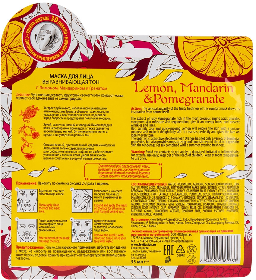 Levitasion Маска для лица, выравнивающая тон «Lemon, Mandarin & Pomegranat»