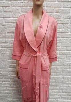 Стильный трикотажный халат, декорированный изящной вышивкой и стразами. Воротник - шалька, удобные карманы. Мягкий и приятный на ощупь, он подарит Вам особое ощущение уюта и комфорта.