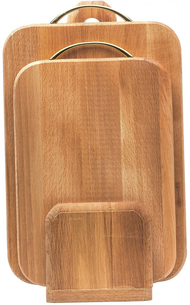 Комплект досок разделочных (бук, 2 шт) с металлической ручкой-25% +360 есть подставка компактность необработанная поверхность сложно мыть