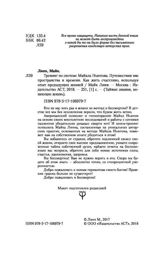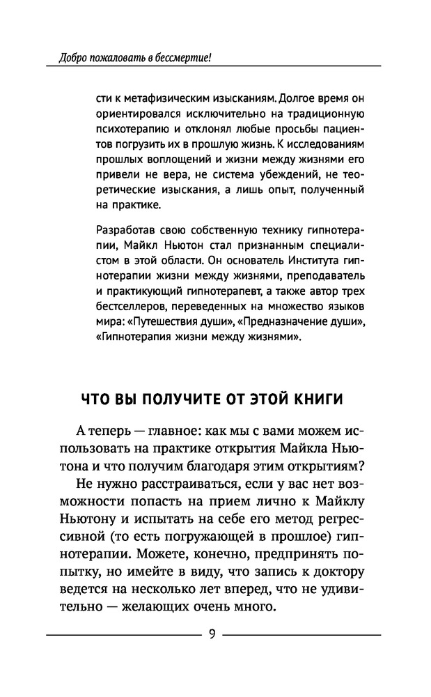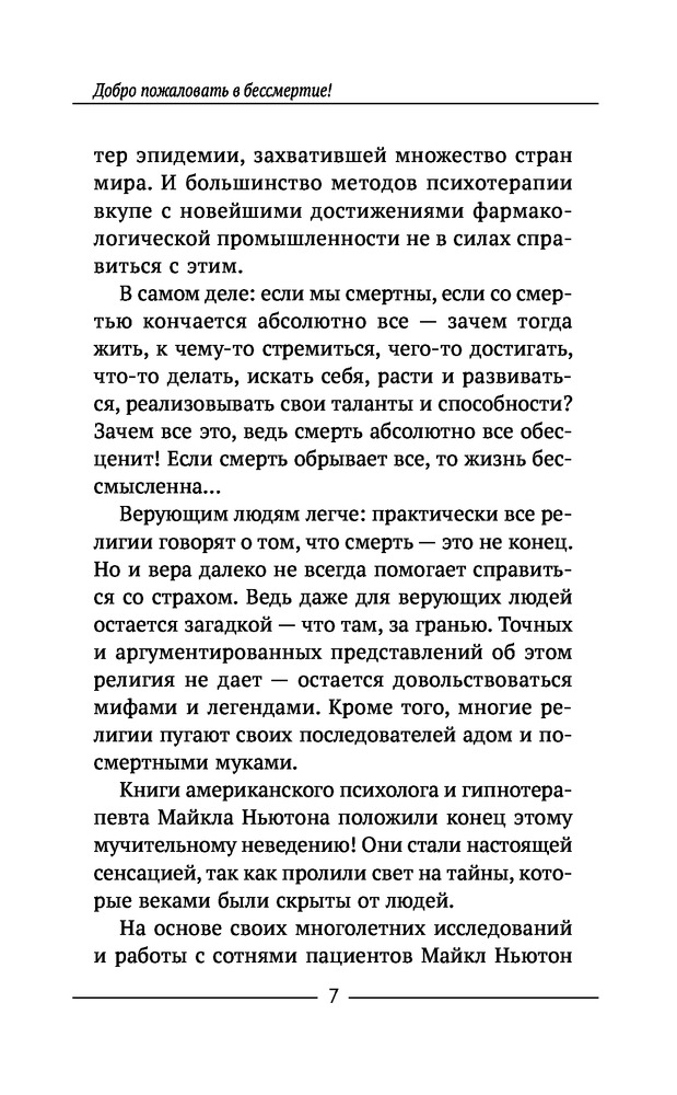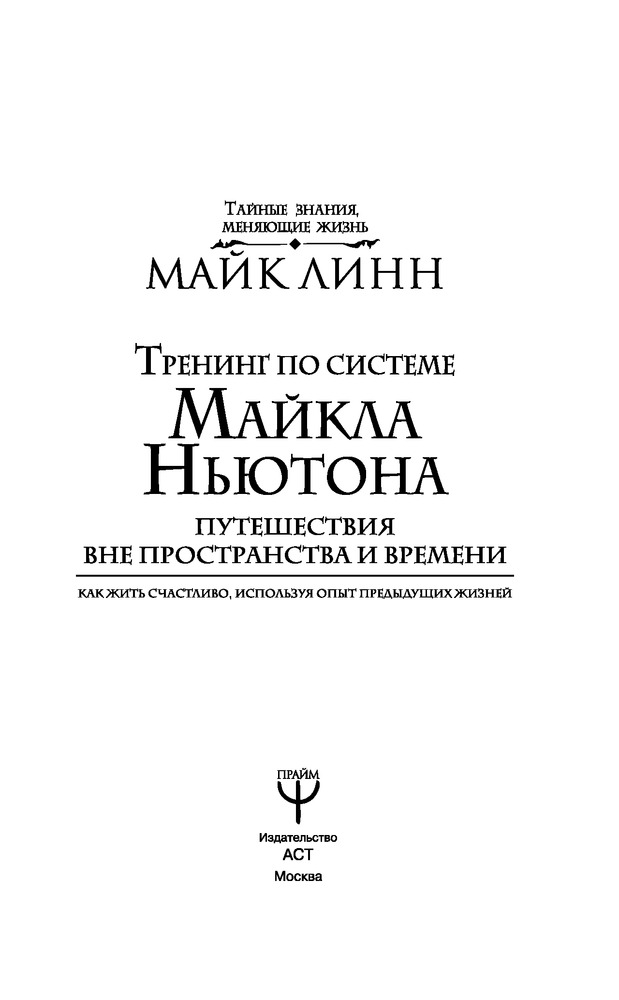 Тренинг по системе Майкла Ньютона. Путешествия вне пространства и времени. Как жить счастливо, используя опыт предыдущих жизнейВ данный момент этот товар отсутствует в продаже. Возможно, у нас найдется аналогичный или похожий товар здесь. Серия: Тайные знания, меняющие жизнь Кто из нас хоть раз в жизни не мечтал о бессмертии? В детстве все мы без исключения верили, что будем жить вечно. |