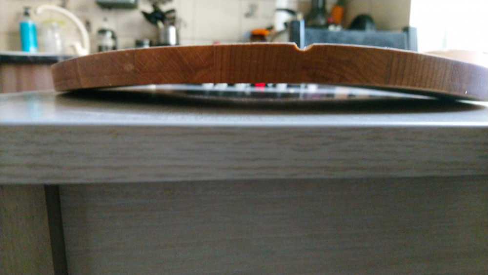 Покупала давно, в январе, несколько раз использовала в качестве разделочной доски, но в основном просто стояла. Вчера, впервые, использовала по назначению, выложила на доску пиццу. И вот, результат на фото. Доска выгнулась, теперь не знаю, может в следующий раз положить пиццу на другую сторону, и доска станет прежней?