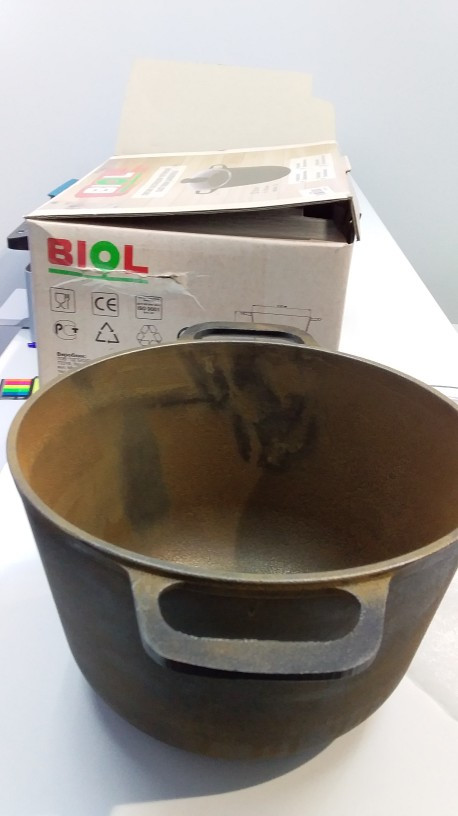 Важно! Ржавчина на чугунной посуде не является производственным браком. Её возникновение связано с длительным контактом с водой, например, при замачивании, мытье в посудомоечной машине, недостаточном высушивании после мытья, хранении в условиях высокой влажности или оставлении на открытом воздухе. Удалить ржавчину с чугунной посуды можно с использованием соответствующих чистящих средств. Перед первым использованием посуды рекомендуется промыть её под горячей проточной водой, тщательно высушить или прогреть для полного испарения влаги. Затем следует нагреть изделие на плите до температуры свыше 100 °C, нанести тонкий слой растительного масла на внутреннюю поверхность и дать посуде остыть. После этого чугунная посуда готова к эксплуатации. |