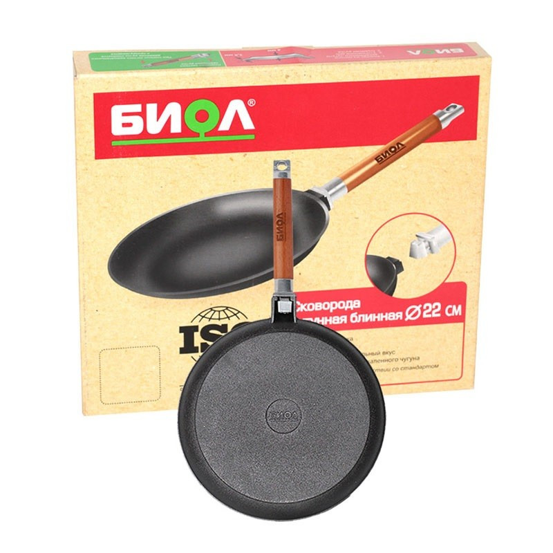 Ранее покупала на этом сайте сковороду для блинов "Биола", очень понравилась. Вторую (для ускорения процесса выпечки) хотела тоже этой фирмы. И очень разочарована. Сравниваю с предыдущей. Вес первой - 700 грамм, второй 1кг 100 граммов. Диаметр один. Ручка неудобная. Когда наливаешь тесто, оно плохо растекается по сковороде, съеживается, блины получаются какие-то сжатые. Периодически приходится сковороду маслом мазать, чтобы не прилипало тесто. С первой сковородой таких проблем нет.