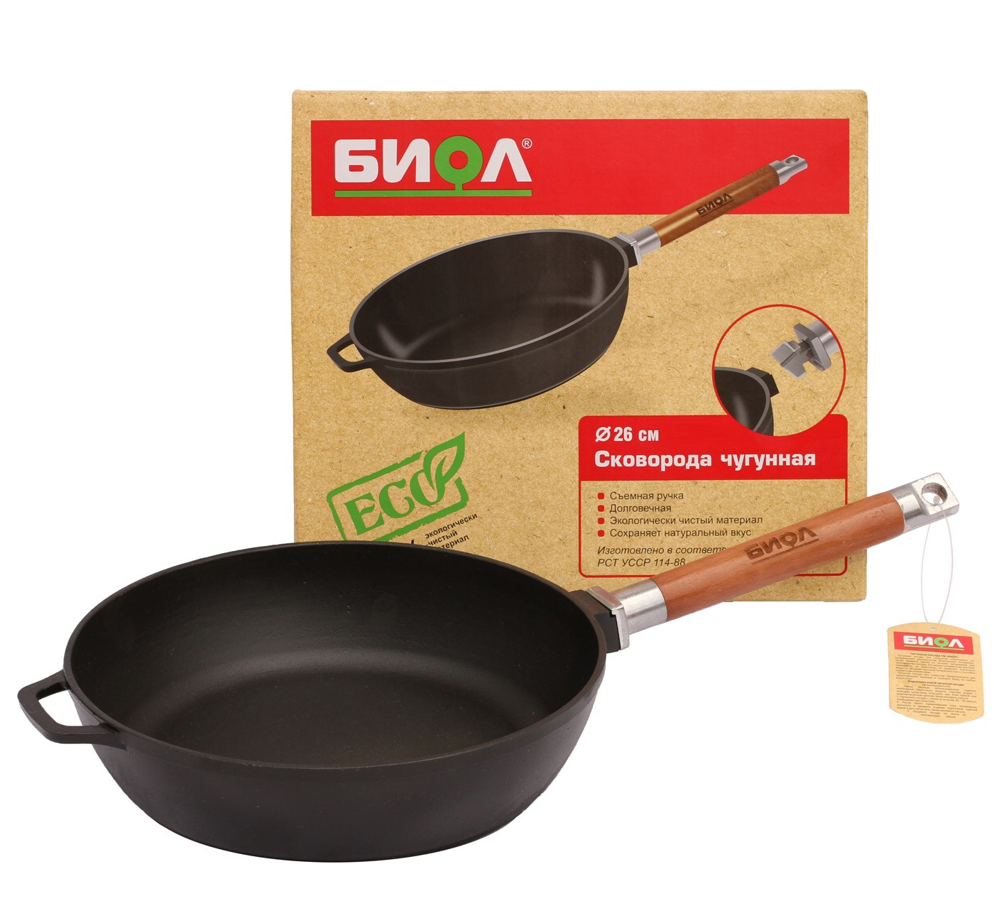 БИОЛ Сковорода чугуннаяВ данный момент этот товар отсутствует в продаже. Возможно, у нас найдется аналогичный или похожий товар здесь. Сковорода из чугуна - один из самых древних и проверенных видов посуды. При правильном уходе пользоваться такой посудой можно очень долго, передавая из поколения в поколение. Чугунный сплав абсолютно безопасен для здоровья человека и окружающей среды. Естественные антипригарные свойства чугуна только улучшаются со временем. Чугунная посуда хорошо проводит тепло, поэтому идеально подходит для тушения, томления, а также для приготовления на всех видах плит. |