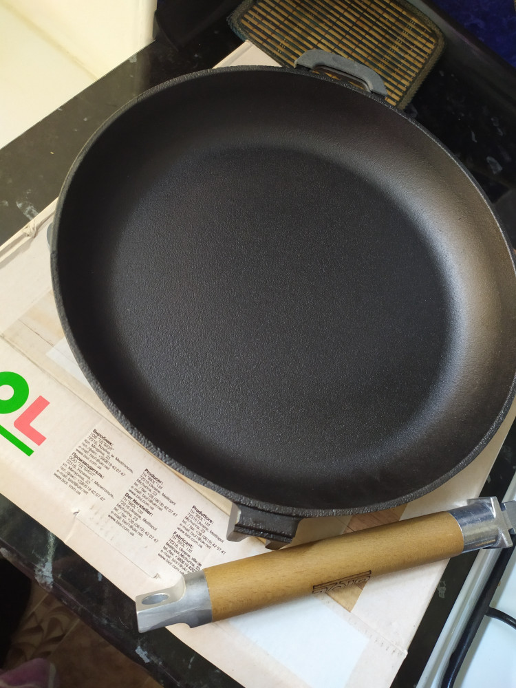 Сковорода очень хорошая. Ухаживаю как положено - прокаливаю солью, натираю солью. Все жарится замечательно, особенно, рыба. Хотелось бы бортиков повыше, но, увы, не успела- все распроданы. Спасибо магазину за качественный товар.
