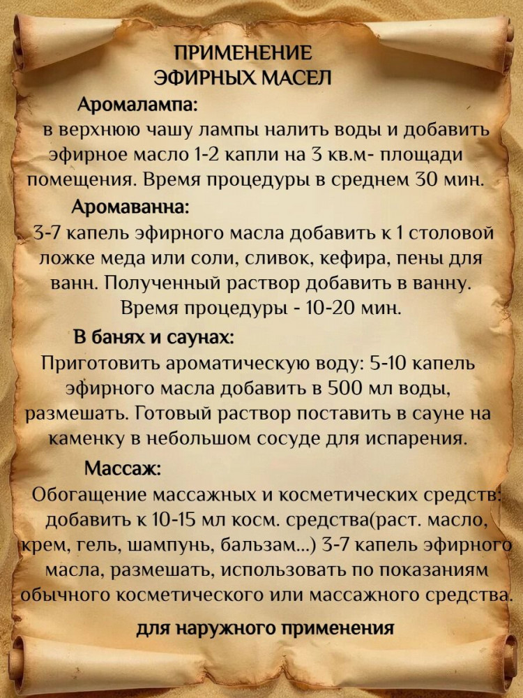 Супер масло. Заказываю уже не раз. Применяю для сна и спокойствия. На платочек несколько капель и рядом на подушку. Спишь как младенец!!