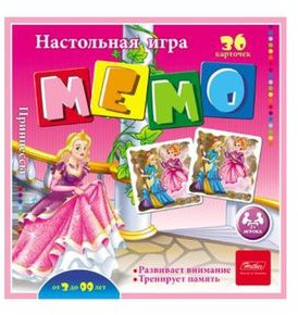 Очень нужная игра. Хорошо развивает память. Для девочки очень классная, в ней все принцессы из всех сказок. То, что любят девчонки. Картинки яркие, красивые, и размер не мелкий. Нормальный, где-то 4,5*4,5 см каждая карточка.