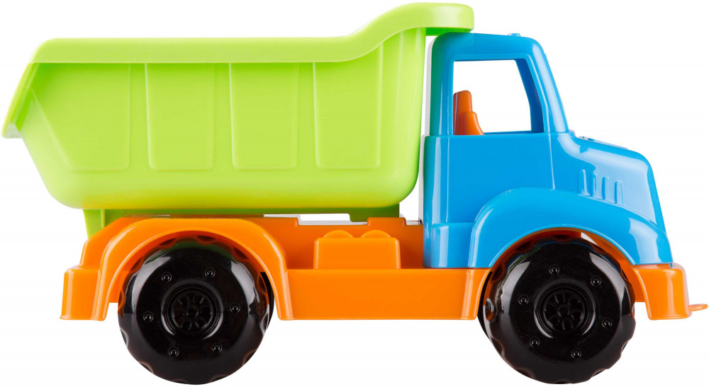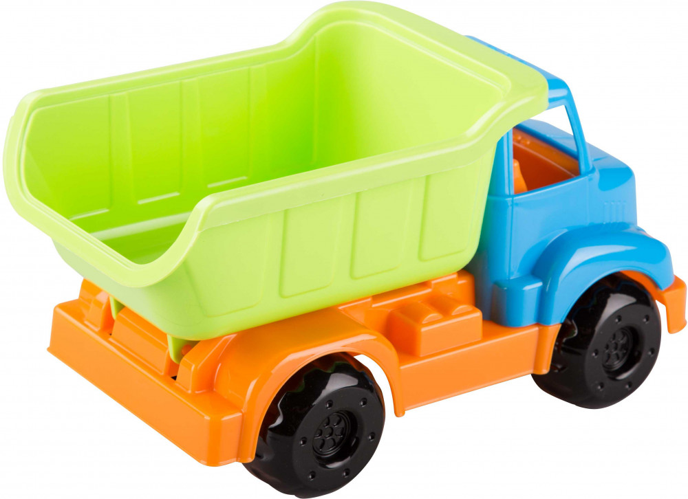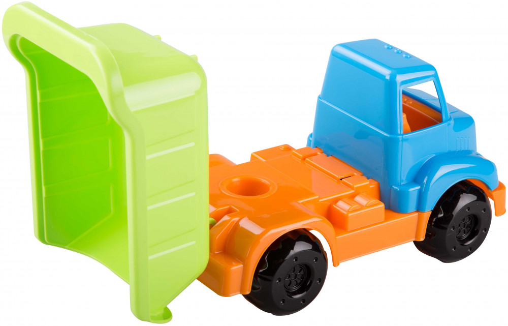 Грузовик небольшого размера, но качество хорошее, пластик крепкий без запаха, острых углов, яркий, удобный при игре, можно перевозить свои мелкие игрушки, детям очень понравился, играют с удовольствием))