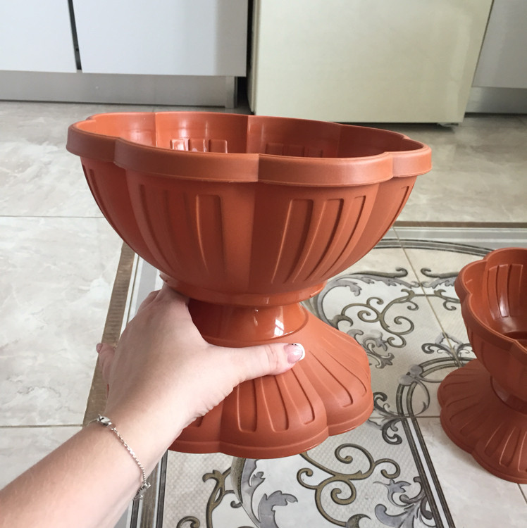 Красота ! Крепкий пластик , есть место для дренажа , проделала отверстия ( с ними всё таки спокойнее , чем без них, корни точно не загниют). Рекомендую , отлично вписывается в интерьер!