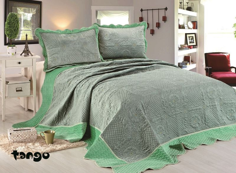 Покрывало качественно сшито. Но, цвет в реальности, по краю, более травянистый, приземлённый. Не понравился. Отказалась.
