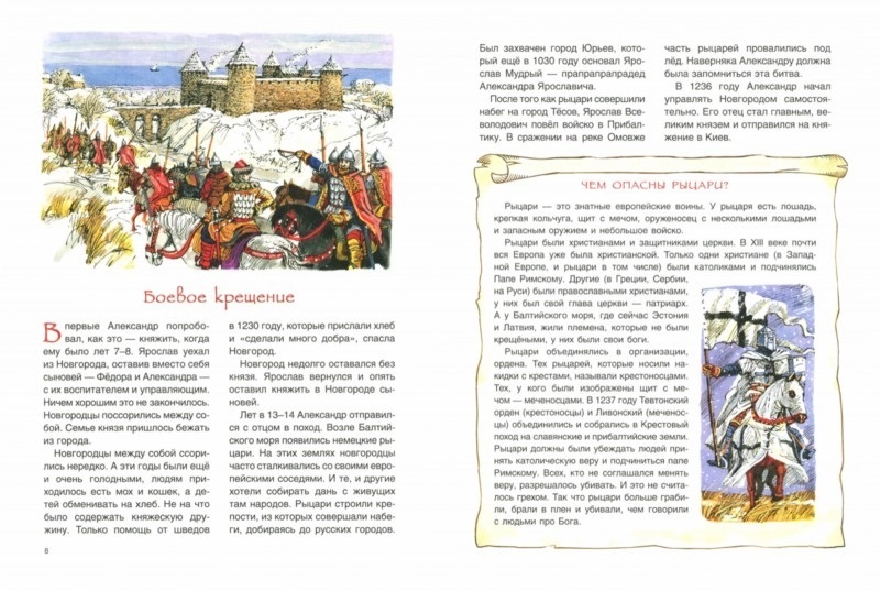 Александр НевскийВ данный момент этот товар отсутствует в продаже. Возможно, у нас найдется аналогичный или похожий товар здесь. Серия: Сто тысяч почему Наш герой родился в 1221 году, в княжеской семье, в Переславле-Залесском — одном из главных городов на северо-востоке Руси. В это время единой Руси еще не было. У каждого князя — своя земля, своя столица. Назвали новорожденного Александром. А теперь он известен как Александр Невский.Впервые Александр попробовал княжить, когда ему было около восьми лет и отец оставил их с братом в Новгороде. Четырнадцатилетним подростком княжич отправился в первый поход на немецких рыцарей к Балтийскому морю. А в 1236 году начал управлять Новгородом самостоятельно. Так начинается история князя Александра Ярославича.Для среднего школьного возраста. |
