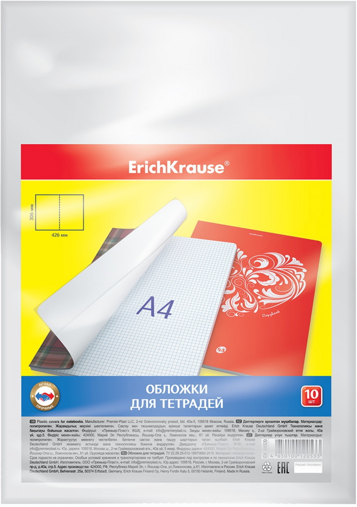 Erich Krause Обложки для тетрадей (306х426 мм, 10 шт.)-25% +23 формат A4 для учебников хорошее качество выносливые тонкие