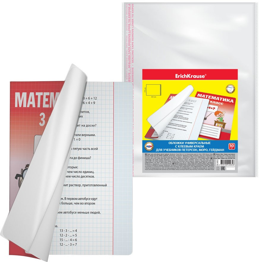 Erich Krause Набор обложек универсальных с клеевым краем для учебников Петерсон, Моро, Гейдман-20% +32 клеевой край подходящий размер совместимость выносливые тонкие