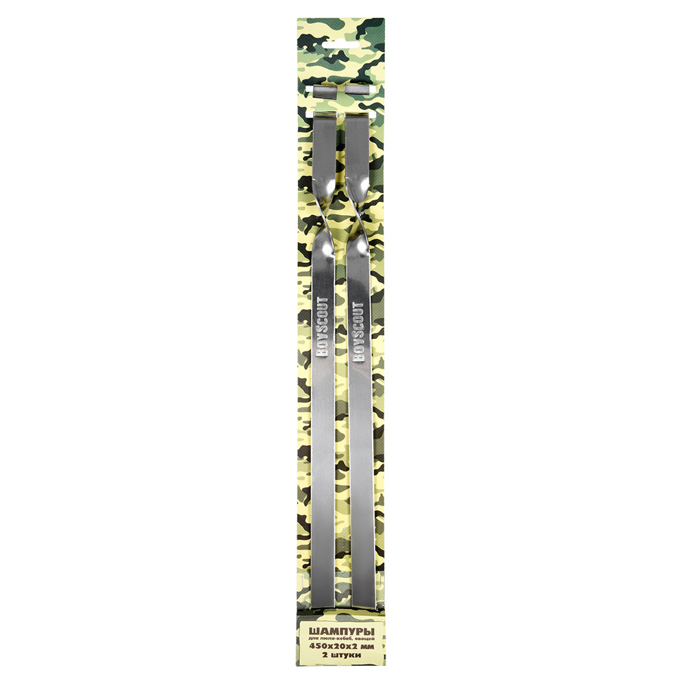 Boyscout Шампуры для люля-кебаб, овощей (45 см, 2 шт)В данный момент этот товар отсутствует в продаже. Возможно, у нас найдется аналогичный или похожий товар здесь. Набор «Boyscout» состоит из 2 плоских шампуров, предназначенных для приготовления люля-кебаб и овощей. Изделия выполнены из высококачественной стали с пищевым хромированным покрытием. Функциональный и качественный набор шампуров поможет вам в приготовлении вкусного шашлыка на открытом воздухе. |