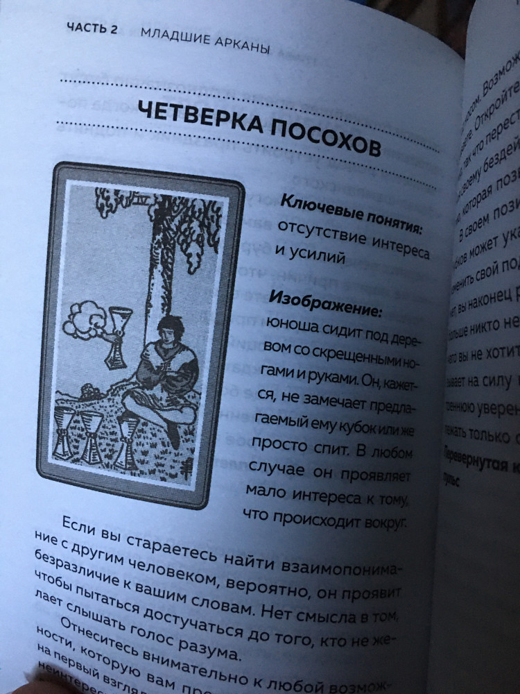 Мне очень понравилась эта книга. Материал предоставлен в понятном виде, без лишней воды и всякой ненужной информации. А самое главное, автор трактует карты так, как я сама или близко мне по значению. Рекомендую однозначно для всех, кто интересуется миром Таро. Спасибо автору за чудесный труд
