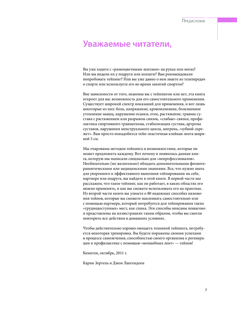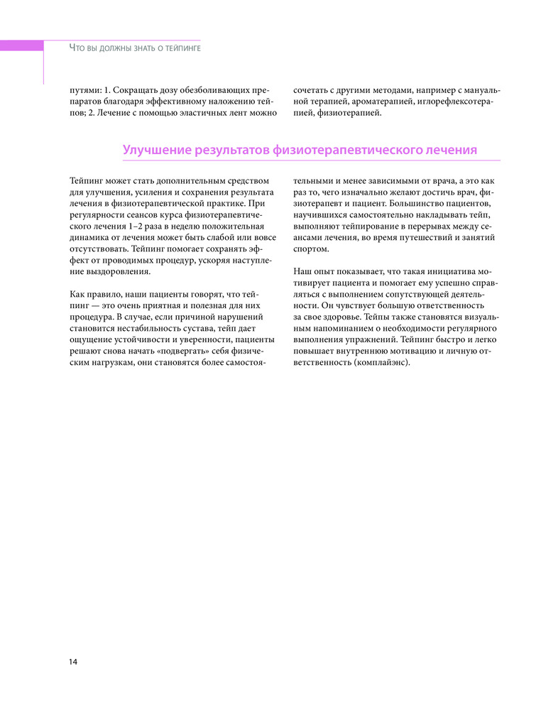 Тейпирование: как правильно использовать в домашних условиях. Пошаговая иллюстрированная энциклопедияДжон Лангендоен, Карин Зертель В данный момент этот товар отсутствует в продаже. Возможно, у нас найдется аналогичный или похожий товар здесь. Серия: Цветные иллюстрированные медицинские атласы Об авторе Джон Лангедоен — сертифицированный иглорефлексотерапевт, спортивный врач, физиотерапевт, магистр естественных наук Карин Зертель- физиотерапевт с большим стажем практического применения мануальных и краниосакральных техник (концепция maitland), коуч-тренер семинаров О чем Тейпирование — на сегодняшний день фаворит в мире нетрадиционной медицины. Вы наверняка уже видели разноцветные ленты на теле у своих коллег или знакомых или знаете о них из телепередач о спорте. Теперь техника наложения тейпов доступна не только спортсменам. Благодаря пошаговым иллюстрациям с описаниями вы сможете выполнять эти техники в домашних условиях. Существует широкий спектр показаний для тейпов, и вот лишь некоторые из них: боль, напряжение, болезненное утомление мышц, нарушение осанки, отек, растяжение, травмы суставов, «слабые» связки, профилактика спортивного травматизма, стабилизация сустава, артрозы суставов, нарушения менструального цикла, мигрень, «зубной скрежет». |