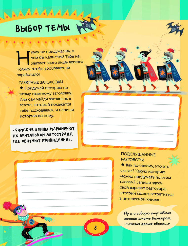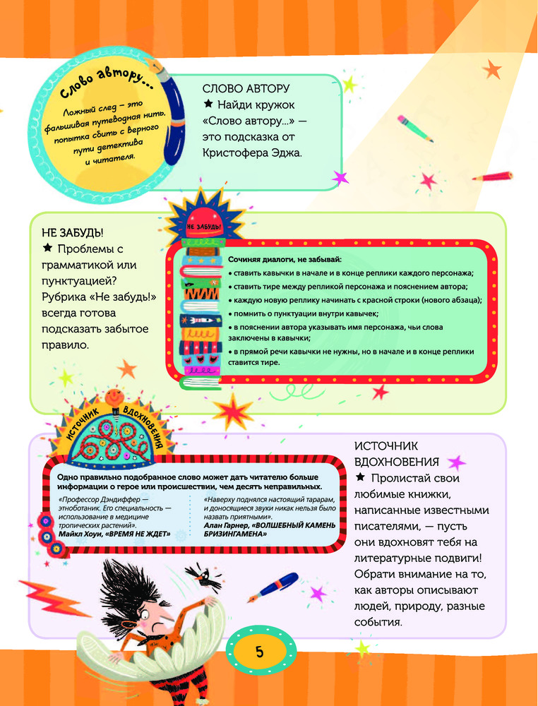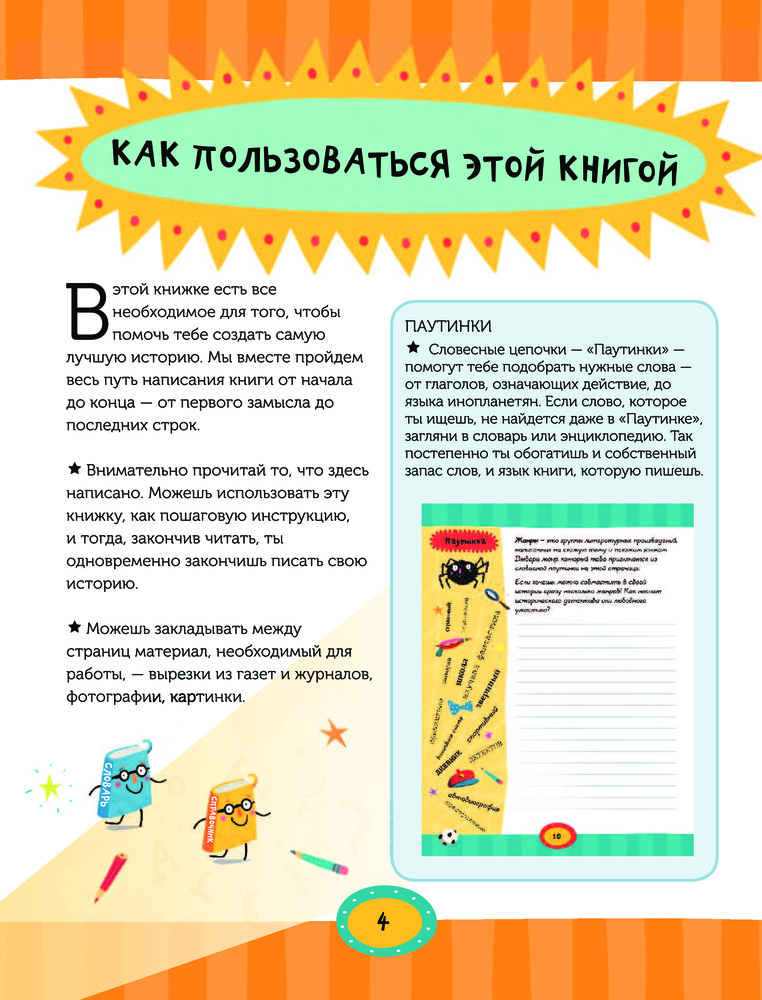 💳 Оплатить за товар можно при получении 🇰🇿 Есть бесплатная доставка по Казахстану от 1 дня 🎁 Копите бонусы с каждой покупки Серия: Научись сам Эта книга-активити поможет тебе самому написать настоящую книгу! Может быть, ты любишь веселые истории, или фэнтези, наконец триллер или комиксы, — теперь ты можешь всё! Воплоти свою мечту стать писателем и смело записывай свою лучшую книгу на этих страницах! Обращай внимание на подсказки, если ты будешь следовать им, то обязательно создашь достойное произведение, которое можно будет представить на суд читателей! |