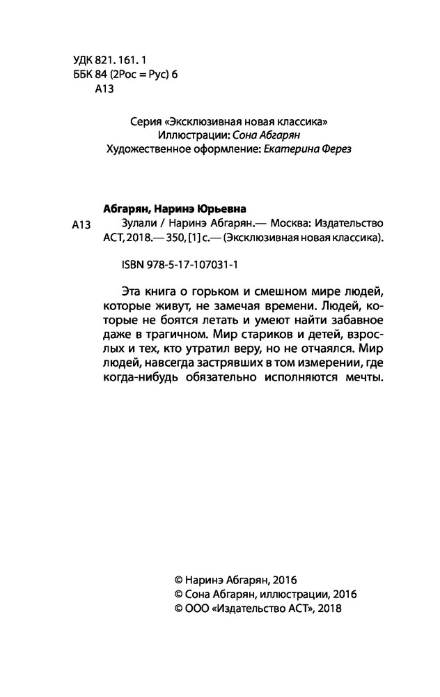 💳 Оплатить за товар можно при получении 🇰🇿 Есть бесплатная доставка по Казахстану от 1 дня 🎁 Копите бонусы с каждой покупки Серия: Эксклюзивная новая классика Эта книга о горьком и смешном мире людей, которые живут не замечая времени. Людей, которые не боятся летать и умеют найти забавное даже в трагичном. Мир стариков и детей, взрослых и тех, кто утратил веру, но не отчаялся. Мир людей, навсегда застрявших в том измерении, где когда-нибудь обязательно исполняются мечты. |