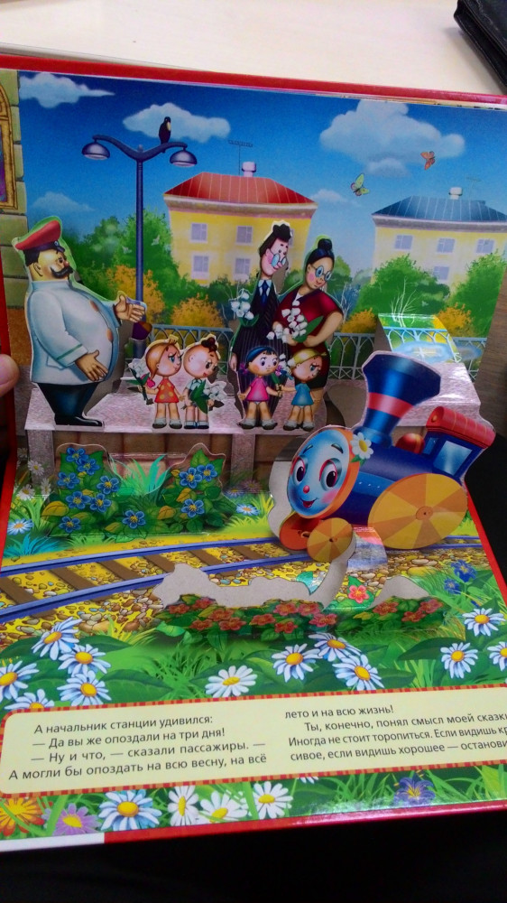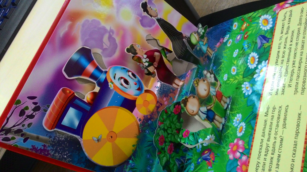 Помнится в детстве меня приводили в восторг такие книжки. Моего ребёнка сейчас не впечатлило, быть может от того, что он уже больше привык к гаджетам... Жаль, что не предусмотрено в этой книге удержание фигурок в вертикальном состоянии при полном раскрытии книги. Чтобы видеть панораму, необходимо открывать на 90 градусов примерно.