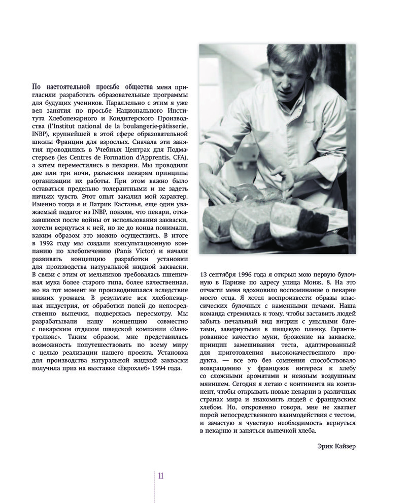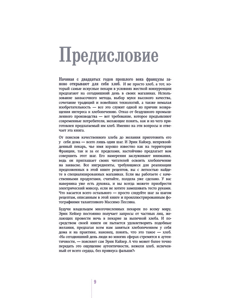 | автор книги Эрик Кейзер - пекарь в пятом поколении, владелец сети "Eric Kayser", одной из самых известных пекарен планеты. Инструкции и рецепты автора просты и понятны. Если взять в руки эту книгу, возникает острое желание начать печь и открыть свою пекарню! |