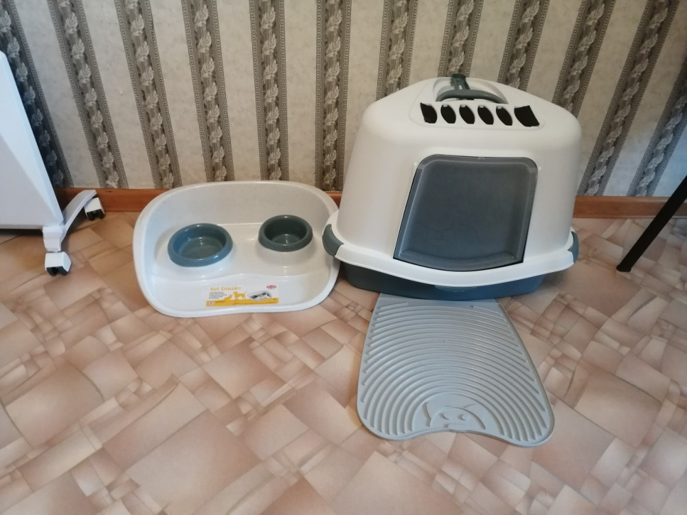 Миски 👍. Брала цвет бело-синий, в жизни отдаёт серым. Не как на фото, по крайней мере у меня. Сразу взяла и угловой лоток, этого производителя. Спасибо Флип!