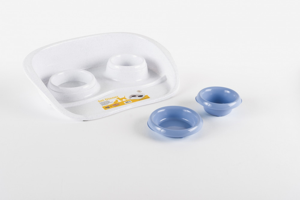 Stefanplast Подставка «Set Dinner» с мисками, 0,2+0,3 л, бело-голубая