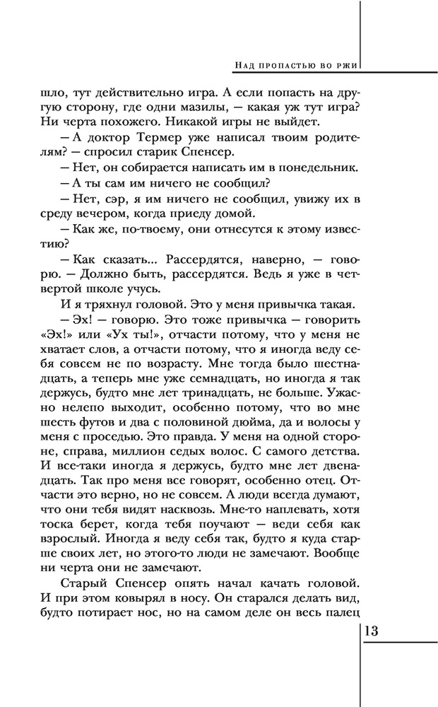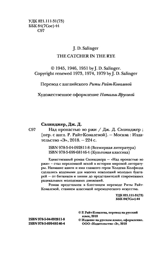 Это произведение я впервые читала в электронном варианте и мне оно очень понравилось! Могу сказать, что "Над пропастью во ржи " одно из любимых моих произведений, рекомендую! Книга в твердом переплете и безумно легкая!