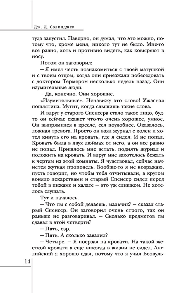 Над пропастью во ржиВ данный момент этот товар отсутствует в продаже. Возможно, у нас найдется аналогичный или похожий товар здесь. Серия: Всемирная литература Единственный роман Сэлинджера — «Над пропастью во ржи» — стал переломной вехой в истории мировой литературы. Название книги и имя главного героя Холдена Колфилда сделались кодовыми для многих поколений молодых бунтарей от битников и хиппи до представителей современных радикальных молодежных движений. |