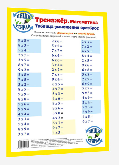 Математика. Таблица умножения. Тренажер, А4-35% +31