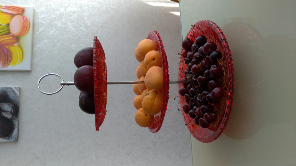 В общем ничего, немного кривовата, постоянно поправлять тарелочки нужно, самая нижняя, как подножка на которой все держится металлическая и очень острая, края острые, по стеклянному столу не передвинешь, поцарапает, только поднимать и переставлять, с фруктами тяжёлая, боюсь поднимать,чтоб не раскололось. Не очень практичная, можно действительно только для конфет она, а не под фрукты.