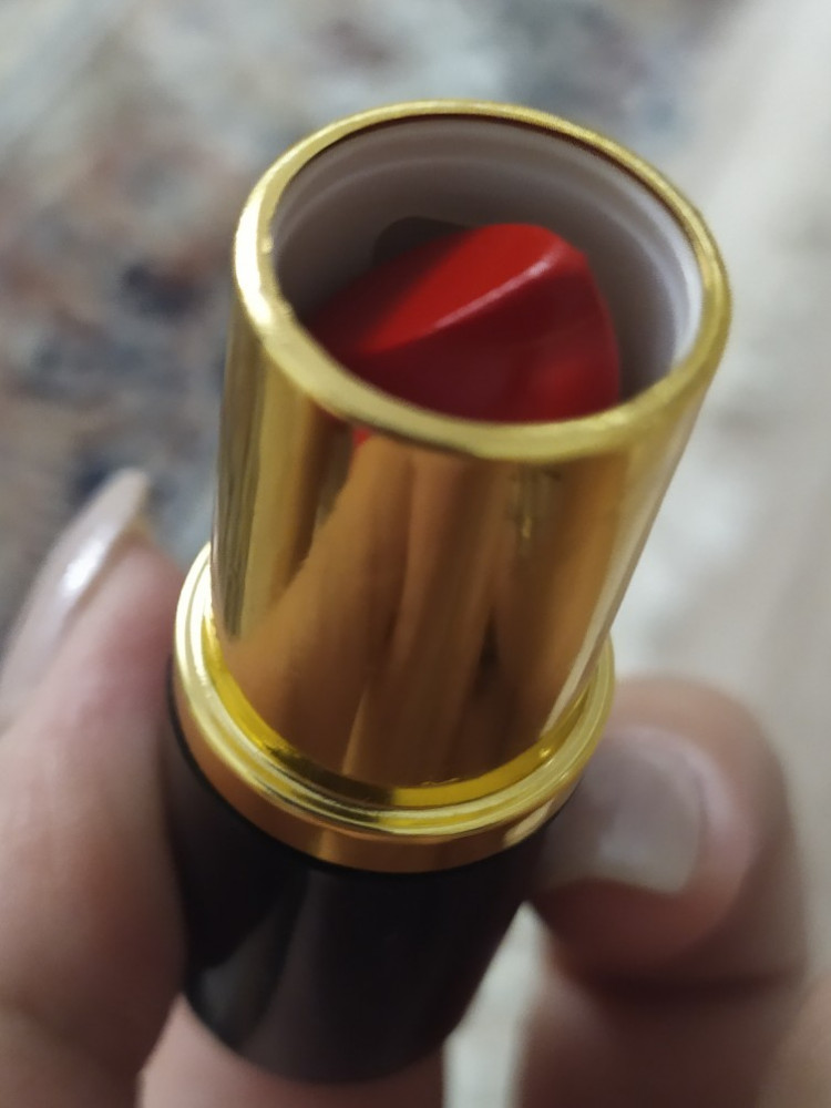 Удивил маленький футлярчик, без всяких украшений. В принципе, это бюджетный вариант. Помада жирная, хорошо увлажняет губы, но все равно на губах есть ощущение чего то постороннего. Помада ложится плотным слоем. На продолжительность - не тестировала. Одно отмечу точно... это свежие помады, для меня важно... часто импорт дорогие помады через месяц становятся горькими.