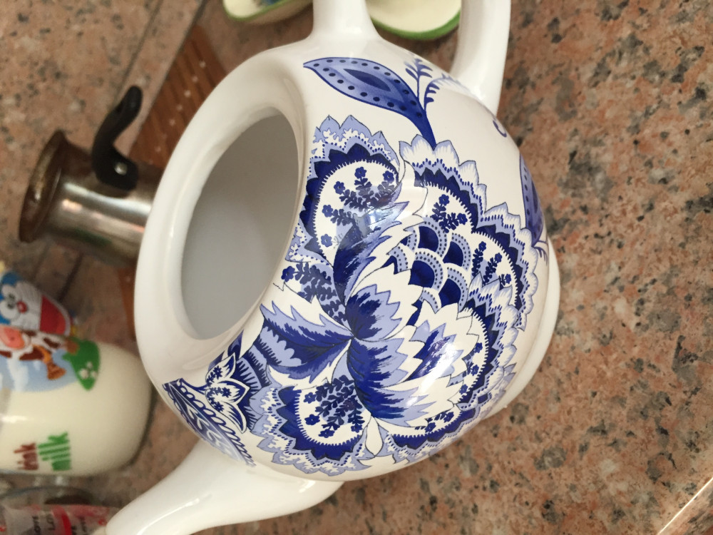 Крышечка так и норовит выскользнуть и разбиться, глазурь слабая, откалывается от любого легкого удара, с носика при наливании течет. единственное в наборе очень красиво смотрится..