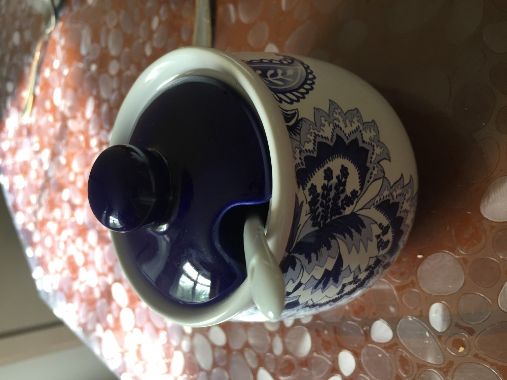 Миленькая сахарница, в наборе сморится очень хорошо. Объем маленький, но мне как раз такая и нужна была. Единственный минус - это серая ложечка.. Смотрится как абсолютно из другой оперы..