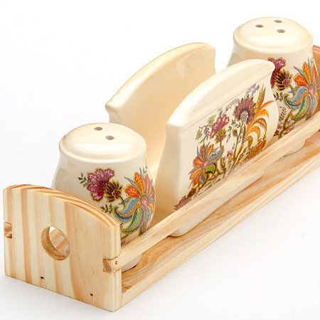 Loraine Набор для специй «Цветочный узор» (4 предмета)В данный момент этот товар отсутствует в продаже. Возможно, у нас найдется аналогичный или похожий товар здесь. Серия: Цветочный узор Набор для специй состоит из солонки, перечницы, салфетницы и деревянной подставки. Предметы набора выполнены из доломитовой керамики высокого качества и красиво оформлены. Отверстия, в которые засыпаются специи, закрыты силиконовыми пробками. Благодаря своим небольшим размерам набор не займет много места на вашей кухне. Дизайн, эстетичность и функциональность набора позволят ему стать достойным дополнением к кухонному инвентарю. |