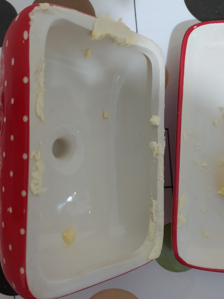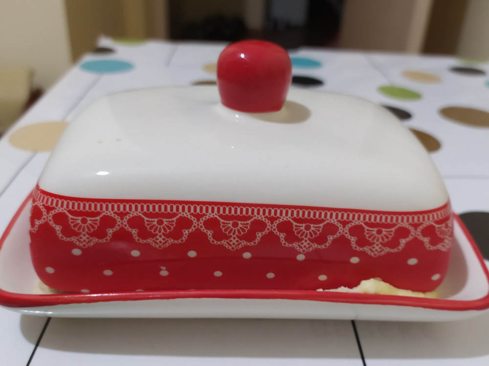 Всё красиво, но маслёнка неудобна тем,что всё масло прилипает к крышке. Мало того,что крышка марается, так её ещё после примерзания в холодильнике, нужно отодрать от дна. В общем, если будете брать, то качайте руки, т.к. чтобы поесть масла вам сначала нужно будет изрядно попотеть, чтобы добыть его из под примерзшей крышки.