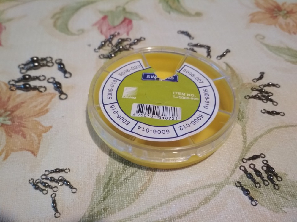 Набор немного разочаровал. В коробочке всего семь отделений, в каждом из которых д.б. шесть вертлюгов. Фактически одно отделение оказалось пустым. К сожалению, из-за наклейки на всю коробочку, поздно заметил, что одно отделение пустое. Всего получилось 36 шт. Какое качество пока не знаю.