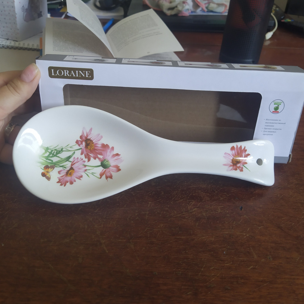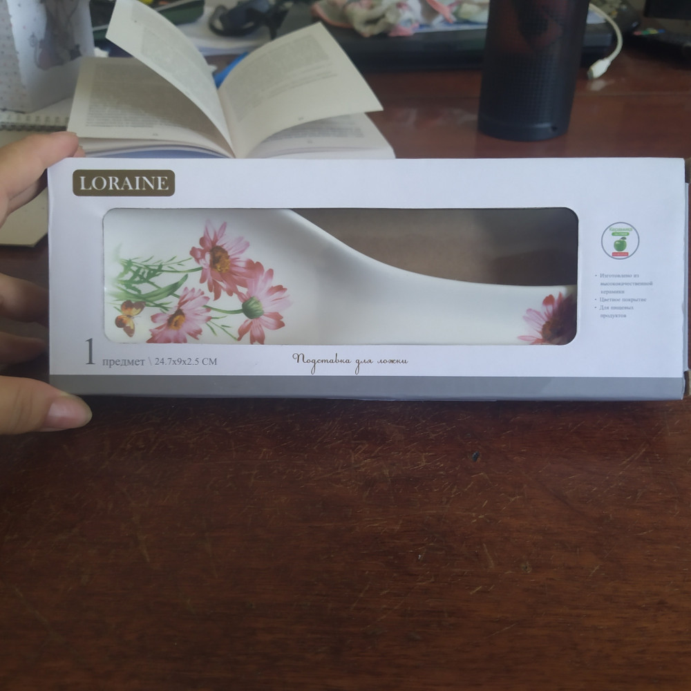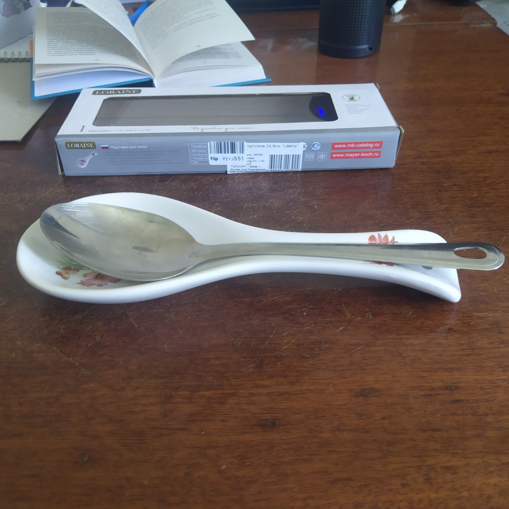 Отличная подставка под ложку и не только. Поварежка и ложка для снятия пенки помещаются на ура. Очень красивая упаковка, можно на подарок. Спасибо Флип за скидочки.