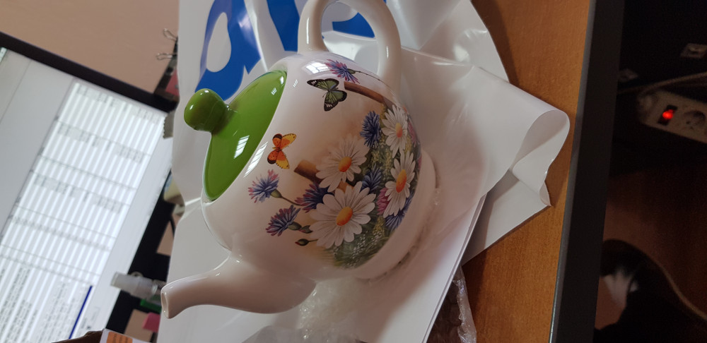 Изумительный чайничек. Очень позитивная, действительно летняя, расцветка. Брала для подарока. Хозяйка довольна).