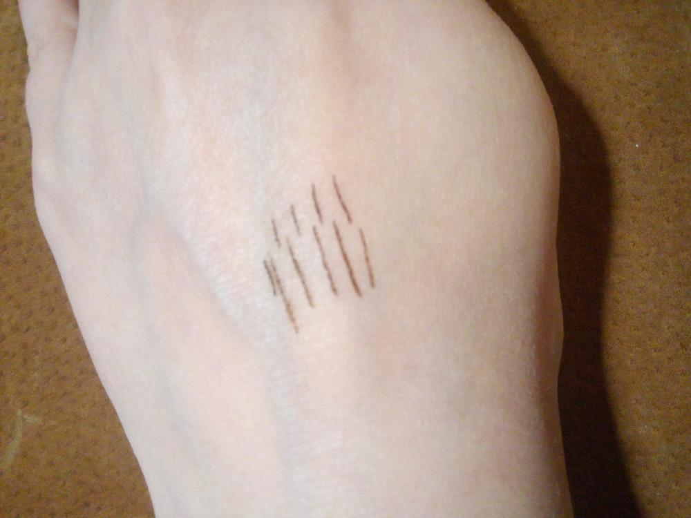 Данное средство для бровей мне не очень понравилось. Брала тон 801, для русоволосых и блондинок этот оттенок не подойдет, Теплый коричневый цвет, было бы не так обидно если бы он рисовал, на руке рисует, а вот брови прокрасить им не получается (даже если обезжирить). Наконечник фетровый, тонкую линию сложно им изобразить. Первое время фломастер был суховат, отдавал совсем мало пигмента, но через некоторое время он потек. Непонятно что тому виной стало. Все-таки маркер от Катрис мне больше по душе, и цвет, и кисточка, и ведет себя хорошо (не течет и не размазывается). На счет стойкости - да она присутствует, но опять же только на руке это можно проверить, так как на бровях практически ничего нет, буквально как пудра темного оттенка. Возможно другой тон будет более удачным.