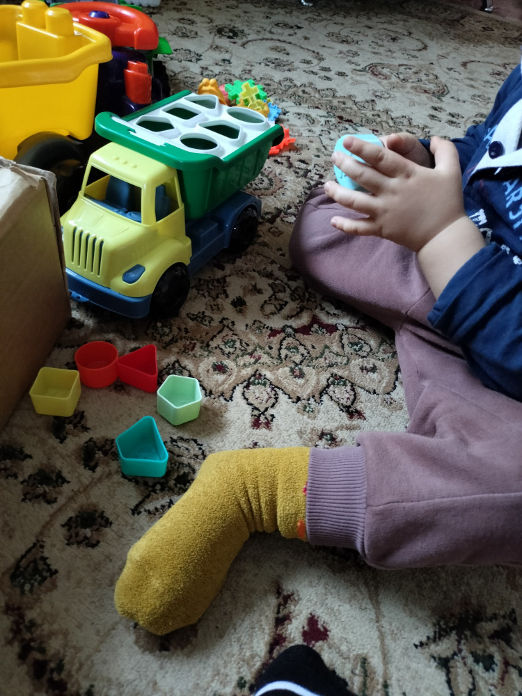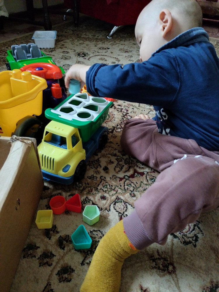 Отличный грузовик. Все фигурки на месте, края не острые. Прошу обратить внимание, что фигурки полые (если кто-то ожидает полноценный кубик, треугольник и тд)