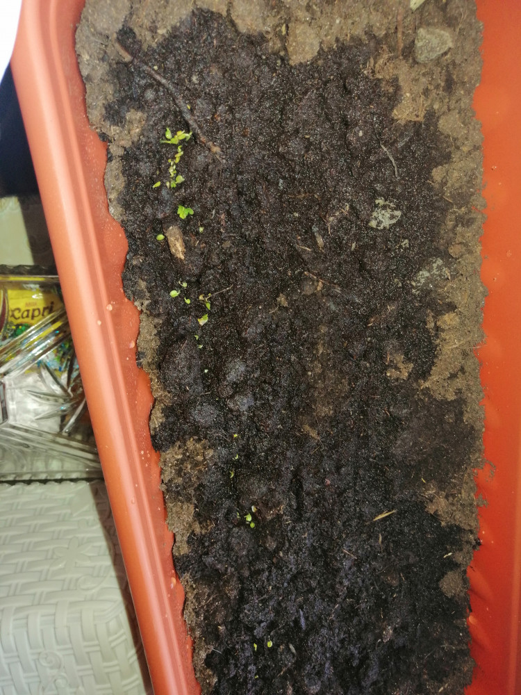 Высадила семена довольно поздно, одновременно с петрушкой и базиликом. Руккола победитель по жизни - ростки пошли уже на третий день. Петрушка и базилик пока сидят в засаде.