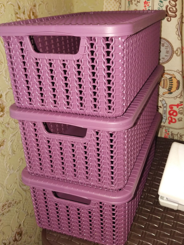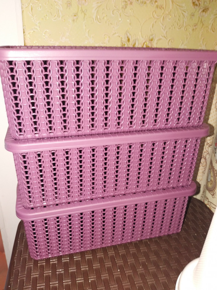 Корзинки неплохие, пластик плотный, крышка закрывается хорошо. Сама не точно посмотрела размеры и мне они маленькие.