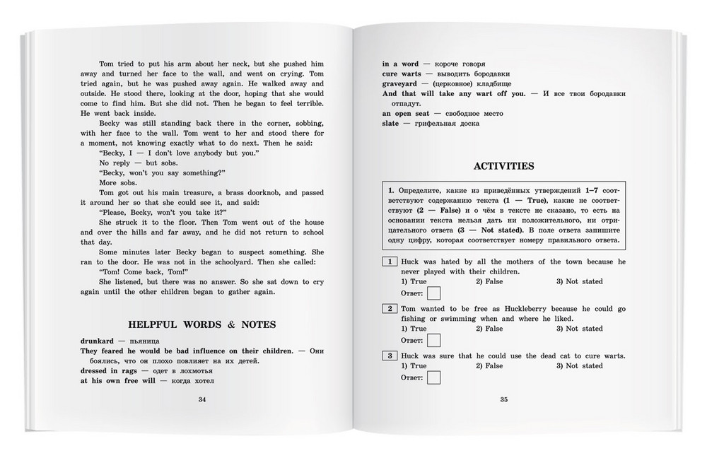 Приключения Тома Сойера / The Adventures of Tom Sawyer (+ CD)В данный момент этот товар отсутствует в продаже. Возможно, у нас найдется аналогичный или похожий товар здесь. Серия: Английский клуб Книга представляет собой адаптацию одного из лучших романов знаменитого американского писателя Марка Твена (1835-1910) "Приключения Тома Сойера". Это увлекательный рассказ о веселом и сообразительном мальчишке из провинциального американского городка и его друзьях, с которыми происходят удивительные приключения. Данное пособие поможет учащимся средней школы подготовиться к основному государственному экзамену по английскому языку. Текст пособия адаптирован в учебных целях до уровня Pre-Intermediate. Каждая глава сопровождается комментарием, переводом трудных слов и выражений, а также упражнениями, направленными на формирование коммуникативной компетенции учащихся. Упражнения позволят сформировать коммуникативные умения в чтении, письменной речи и говорении, а также развить лексико-грамматические навыки. В конце пособия помещён словарь, а также тест в формате ОГЭ с ключами. Книга предназначена учащимся 7 - 9 классов образовательных организаций, а также широкому кругу лиц, изучающих английский язык. Диск содержит текст книги (без упражнений), начитанный профессиональным диктором в учебном темпе (с ясным произношением и немного медленнее по сравнению с обычным темпом). Запись может быть использована как для обучения аудированию (восприятию речи на слух), так и для прослушивания параллельно с чтением текста. |